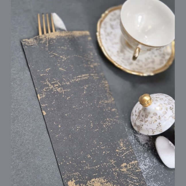 Busta portaposate Rusty Slim nera in carta paglia con tovagliolo Airwave – 1000 pz.